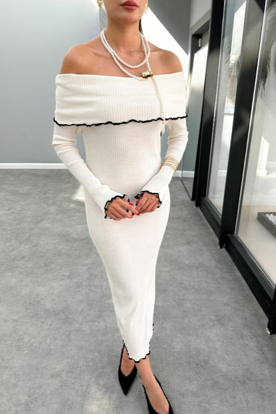 Slim-Fit One-Shoulder Ruffle Work Dress
