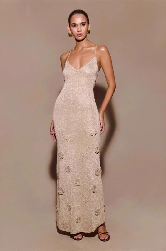 Fitted Maxi Knit Spaghetti Strap V Neck Sweater Dress
