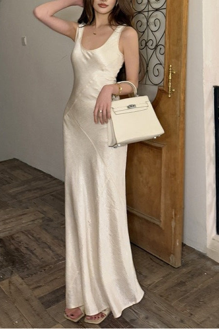 Satin Draped Sash Cami Bodycon Maxi Mermaid Silk Dress