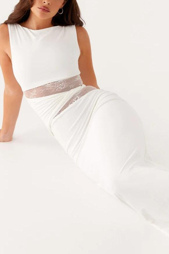 Slim Sheer Lace Paneled Maxi Lace Dress