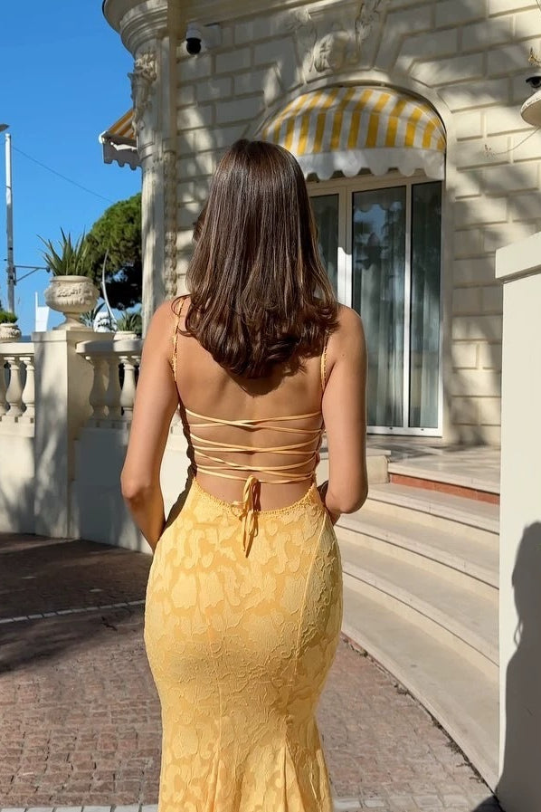 Jacquard Mermaid Cami Maxi Lace Dress