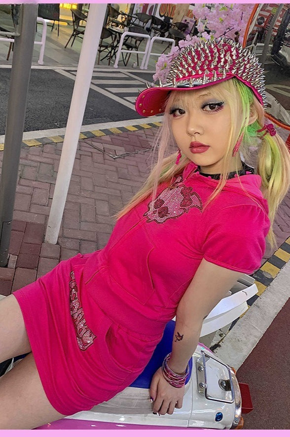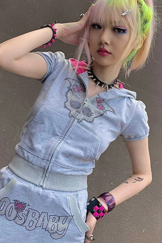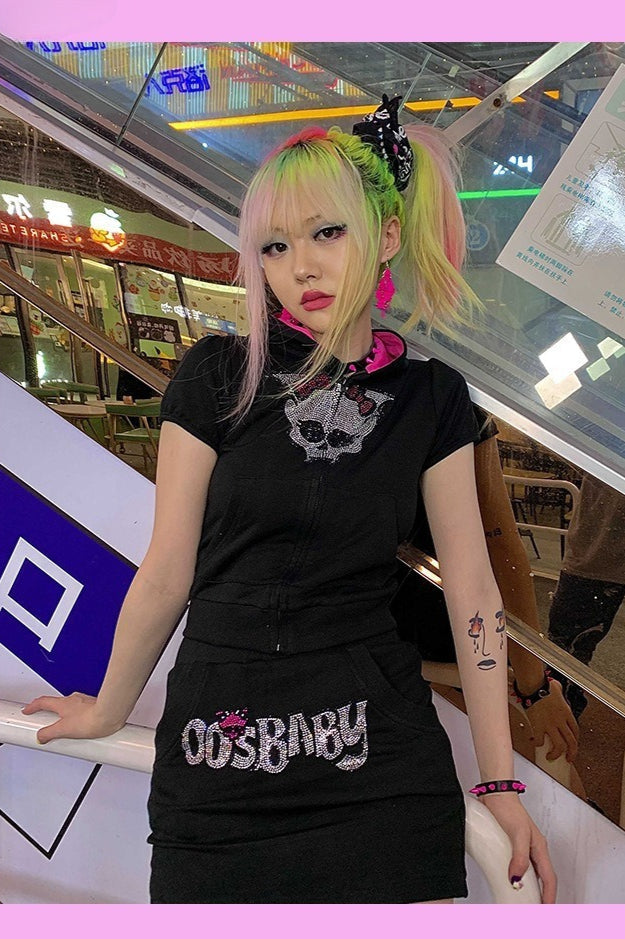 Gothic Skull Rhinestone Y2K Hoodie