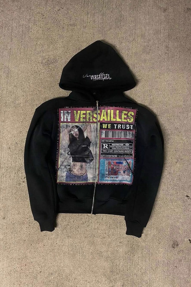 Retro Gothic Print Oversized Hoodie