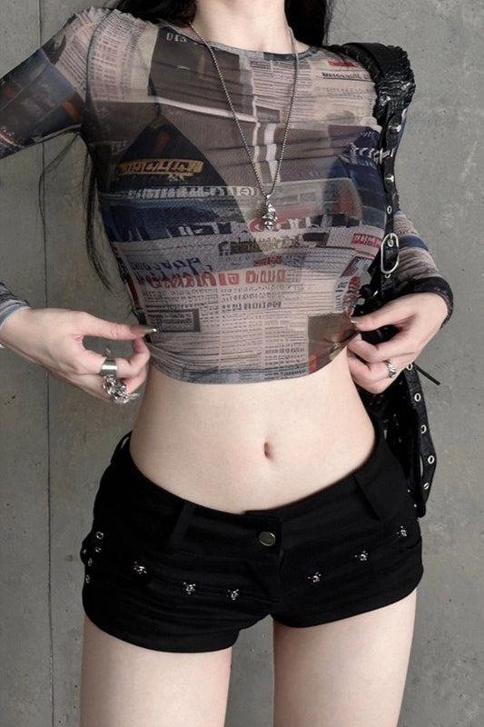 Ruched Mesh Vintage T-Shirt