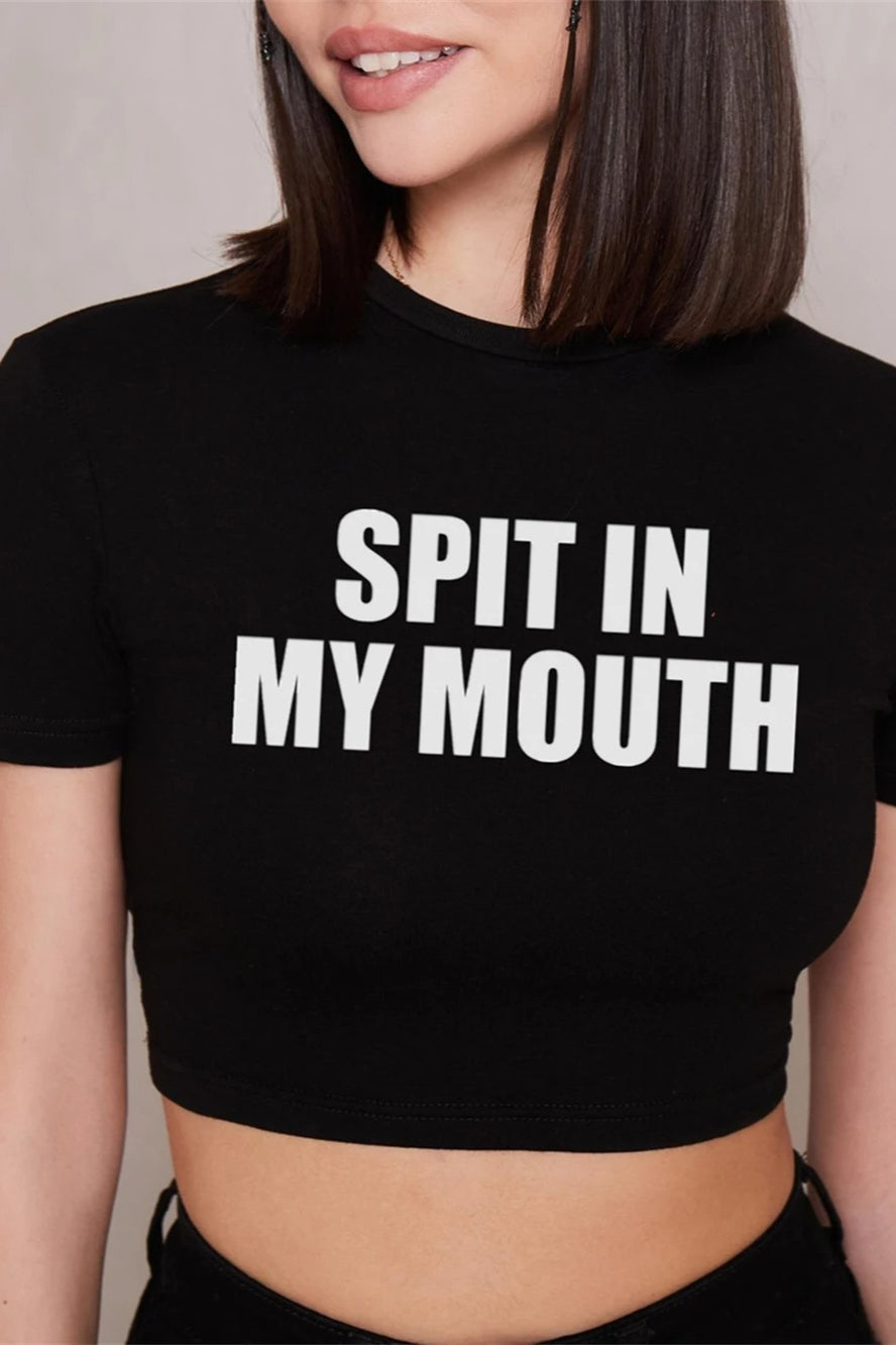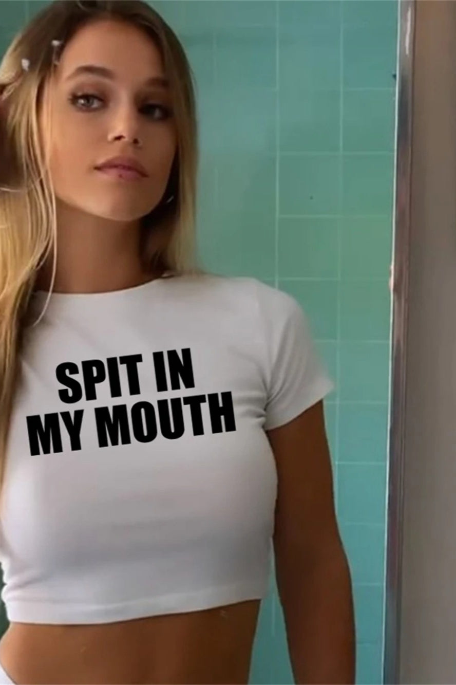 Letter Print Short Sleeve Crop Top