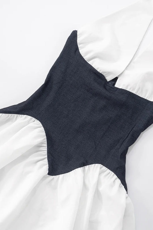 Colorblock Halter Tie Mini Dress