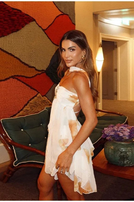 Printed Scarf Collar Mini Dress