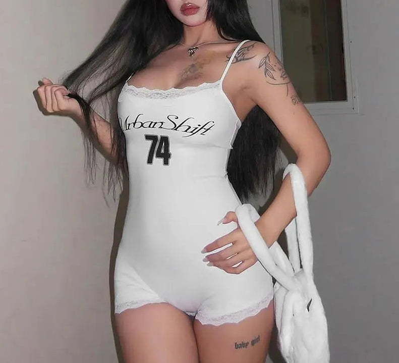 Lace Print Sling Backless Club Romper