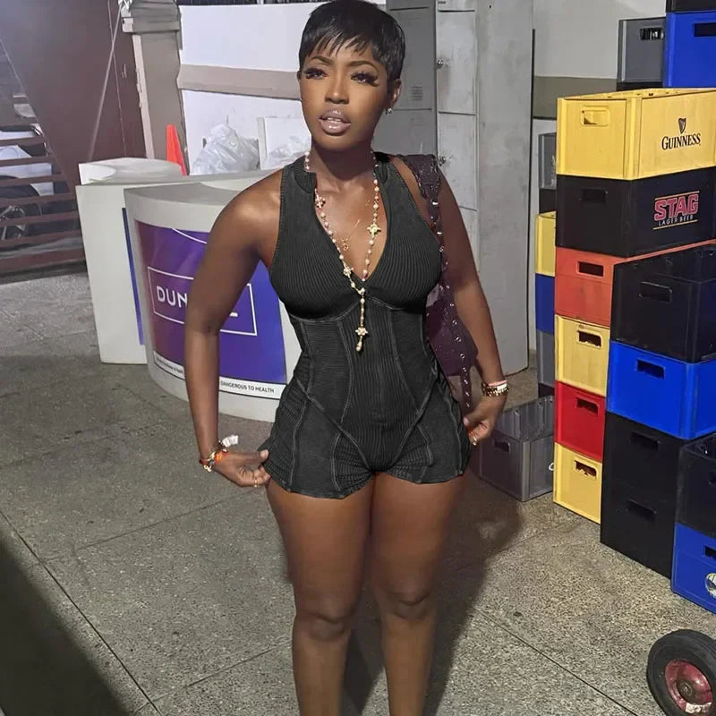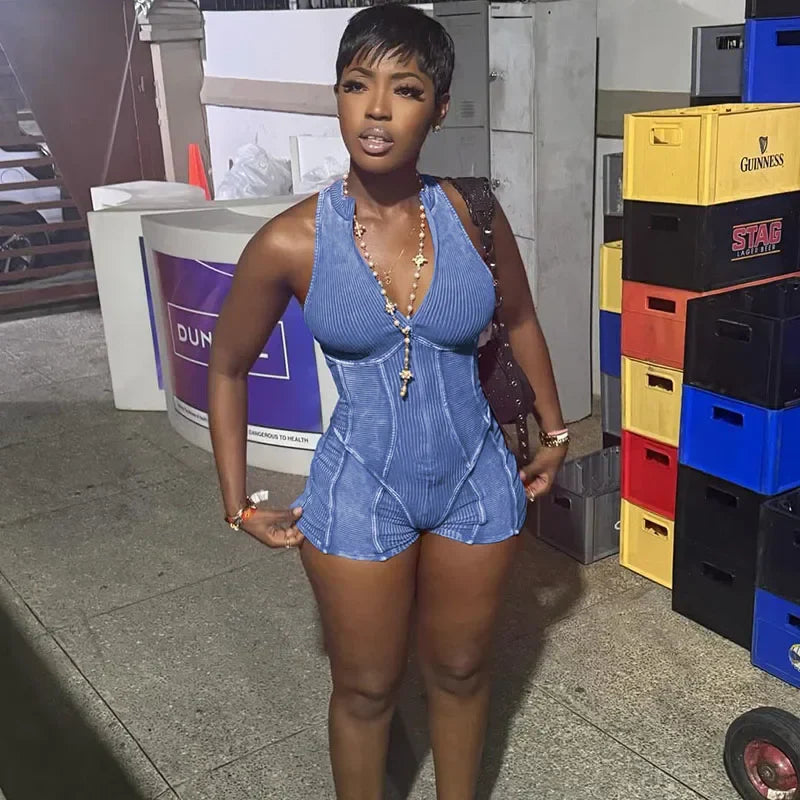Zipper Striped Sleeveless Sporty Romper