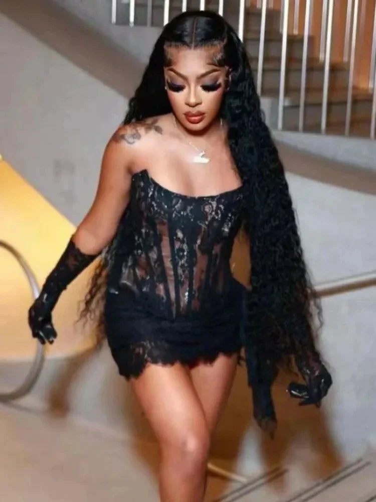 Hipster Wrap Bandage Strapless Lace Dress