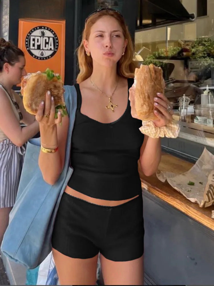 Bow Applique Casual Tank Top Two Piece Shorts Set