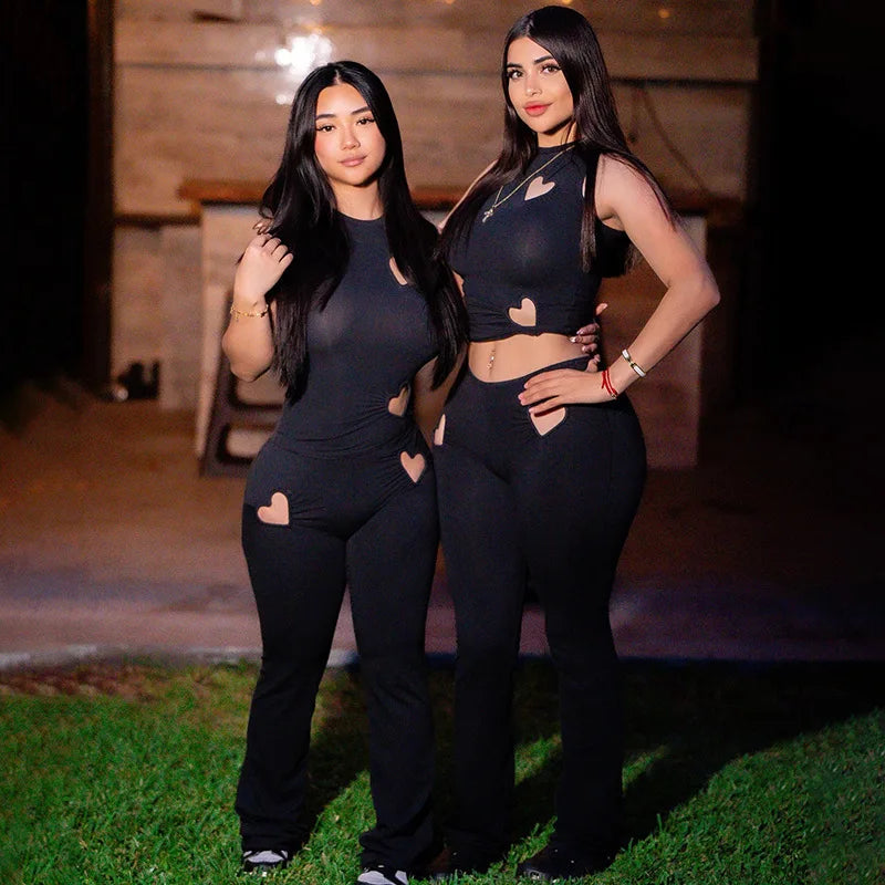 Heart Cutout Crop Tank Two Piece Pants Set