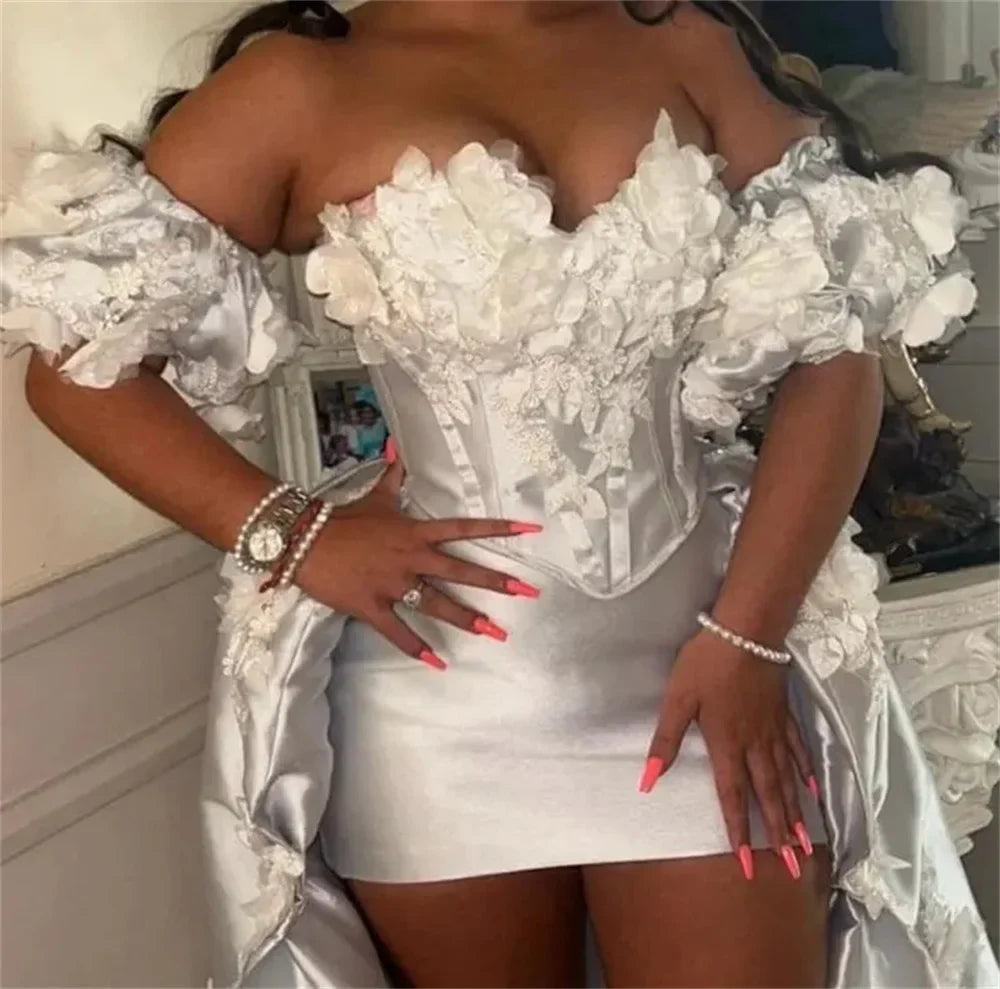 Light Blue Mini Satin Prom Dress