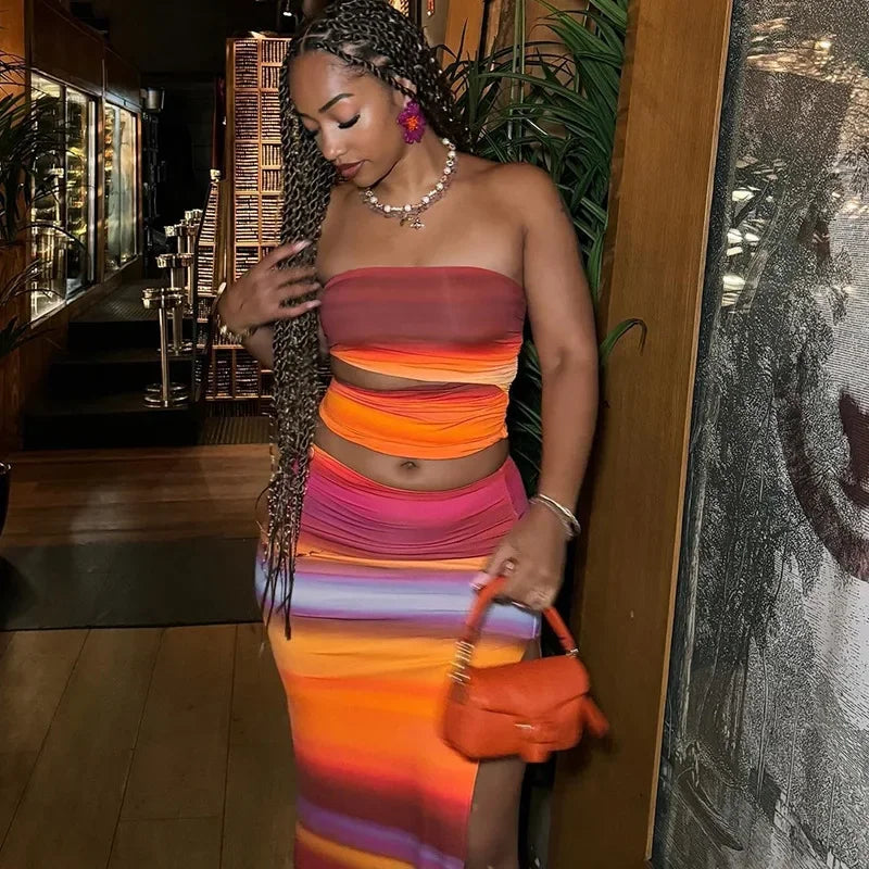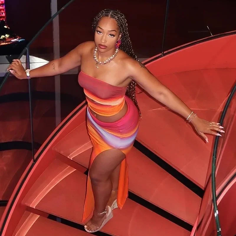 Colorful Cut Out Tube Top Split Three Piece Swim Sets