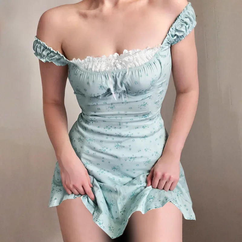 Lace Trim Sweet Holiday Floral Dress
