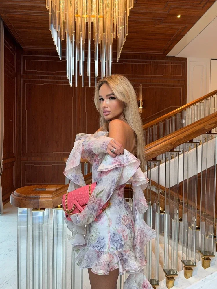 Pink Chiffon Off Shoulder Layered Floral Dress
