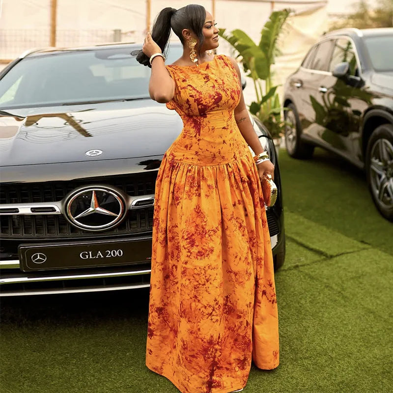 Sleeveless Big Swing High Waist Maxi Floral Dress