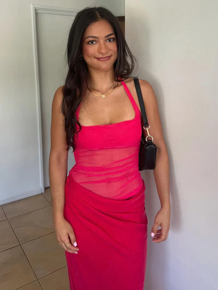 Hollow Patchwork Halter Maxi Dress