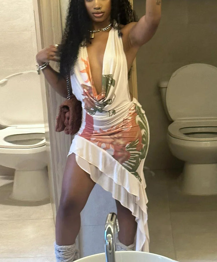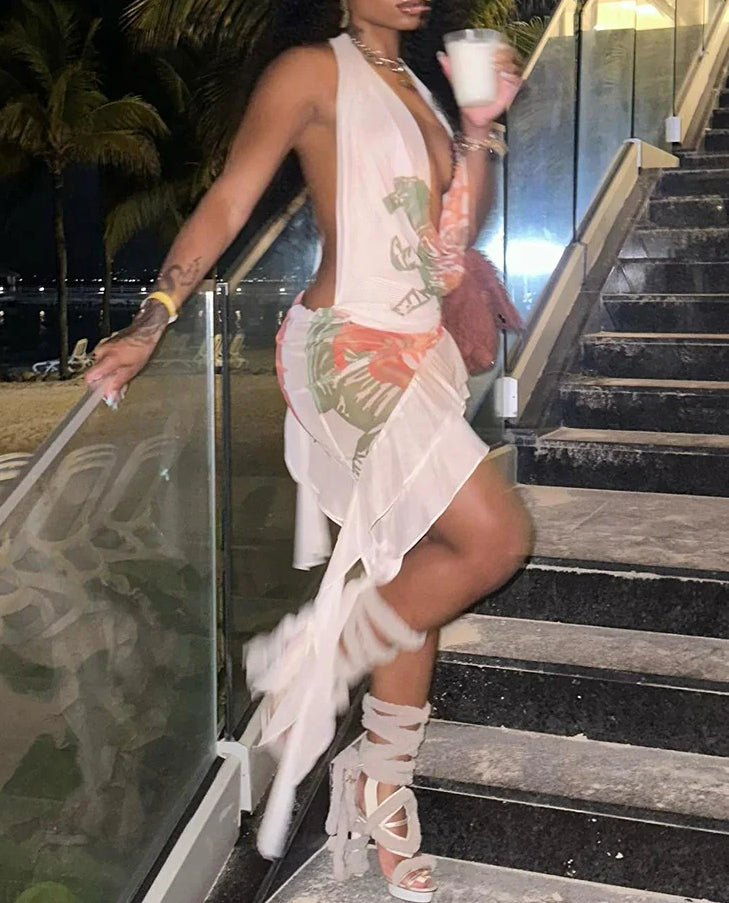 Mesh Print Ribbon Collar Gothic Mini Dress