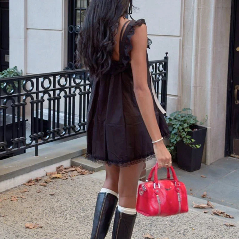 Ribbon Bow Lace Trim A-Line Mini Dress