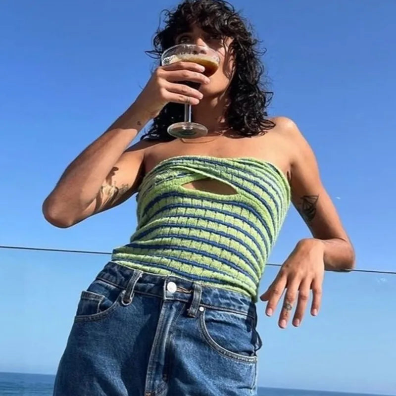 Striped Knit Beach Tank Strapless