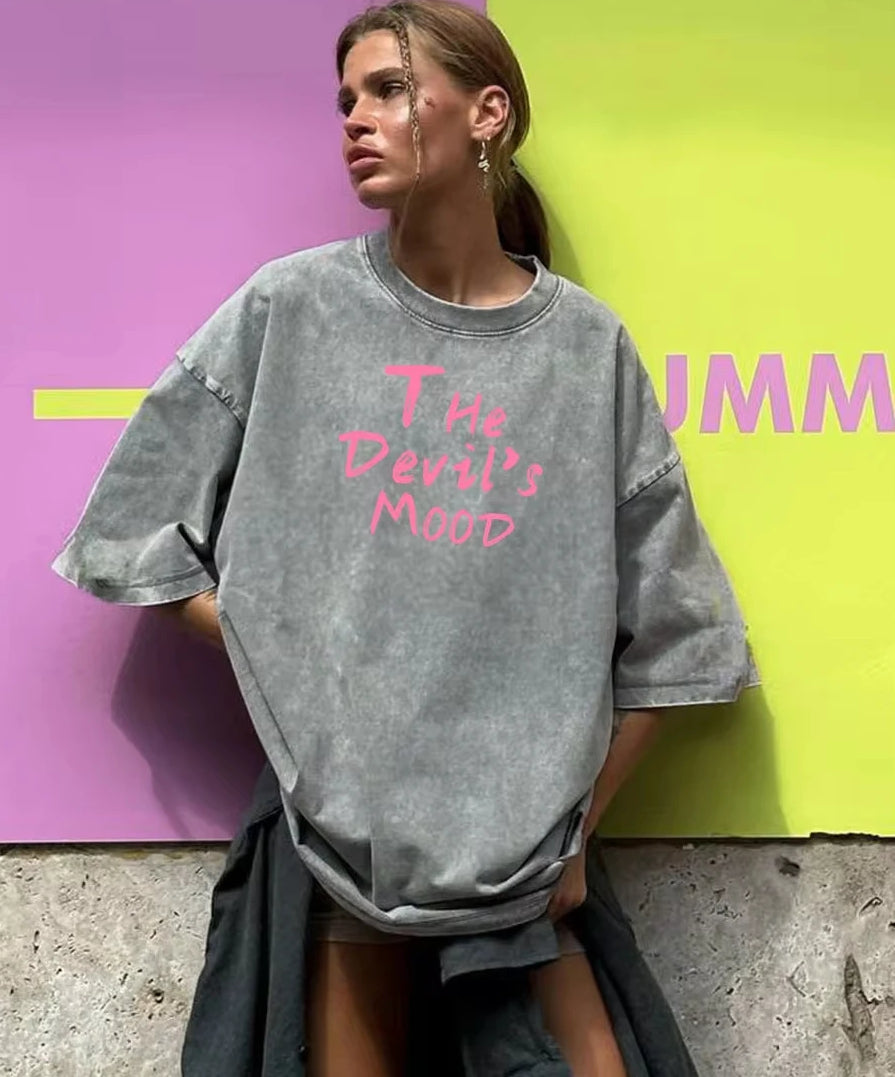 Vintage Letter Washed Cotton T-shirt