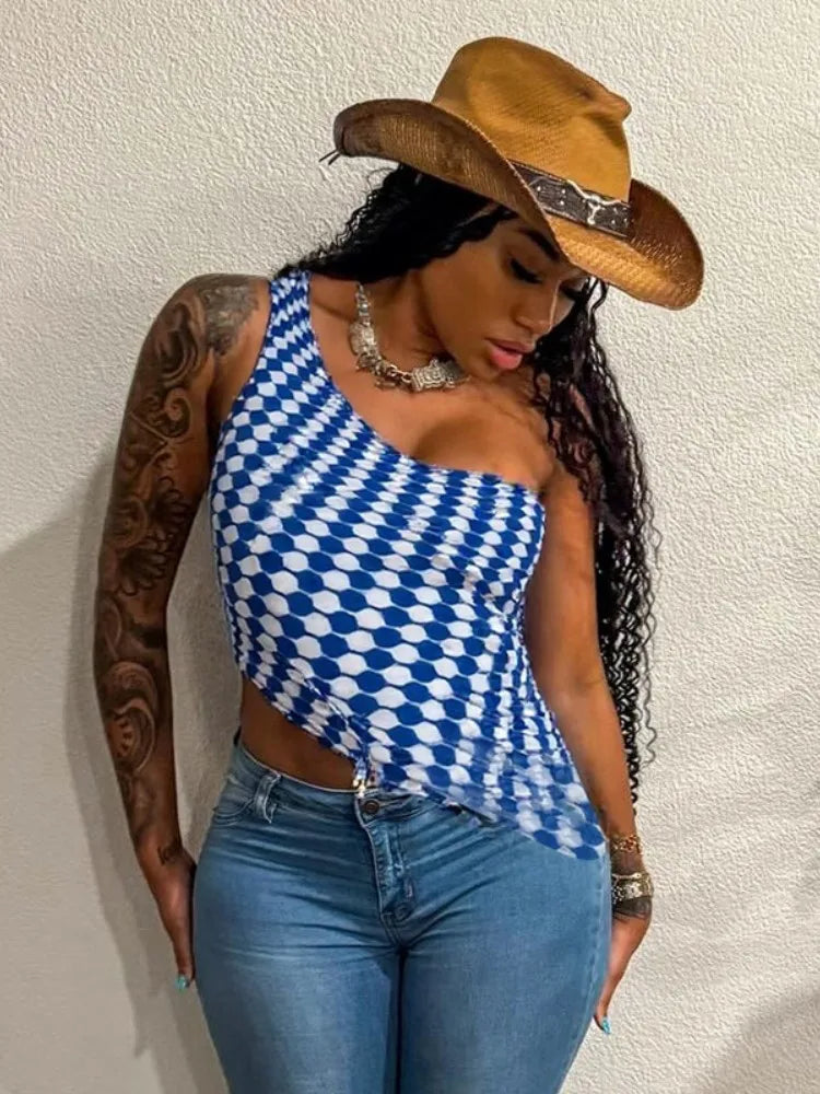 Sexy One Shoulder Asymmetrical Geometric Y2K Cami Top