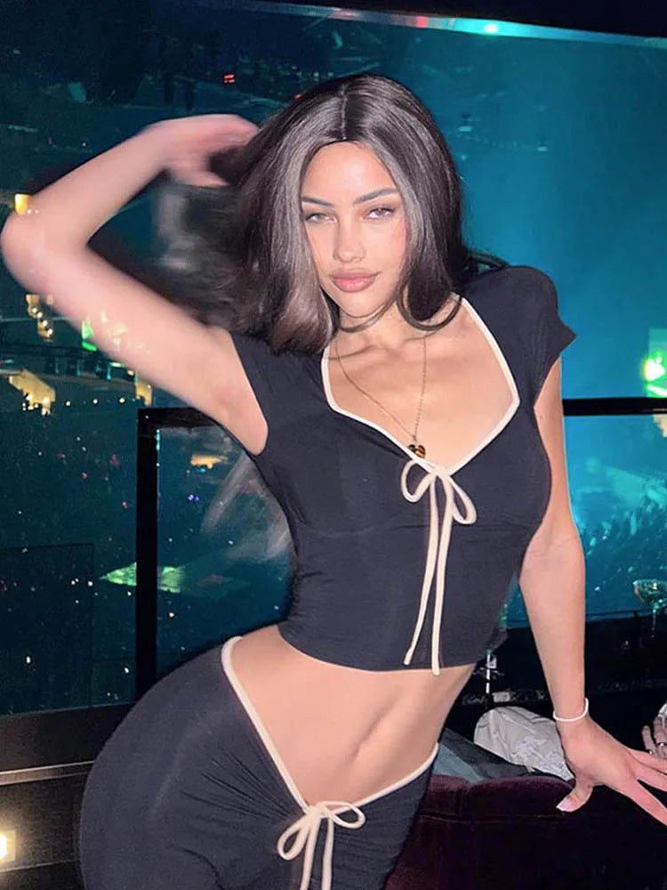 Y2K Bow Baby Tees Slim Fit Short Sleeve Crop Top