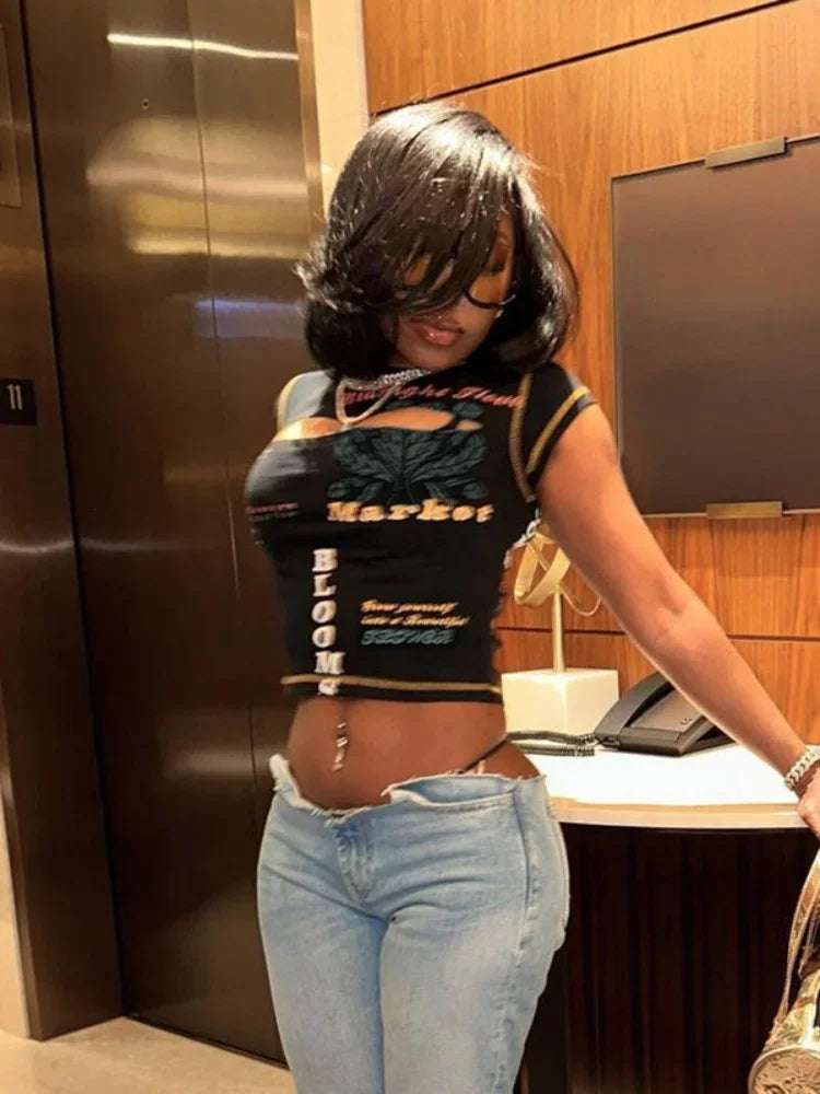 • Details: Cut-Out, Printed Pattern, Crop (Bare Midriff)