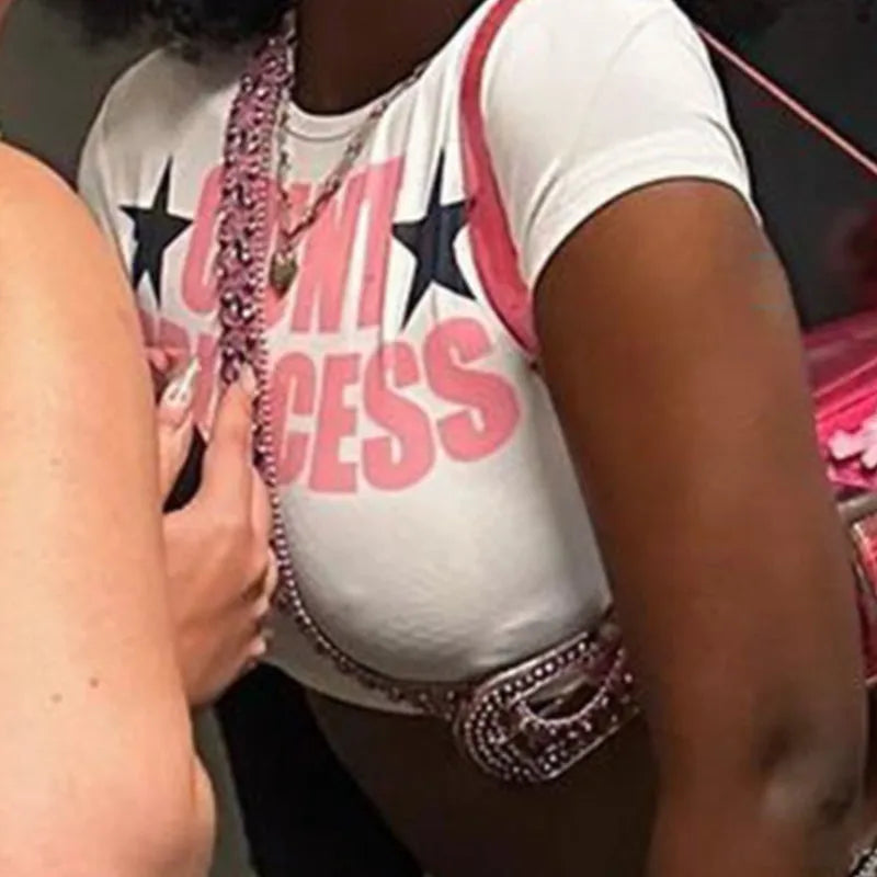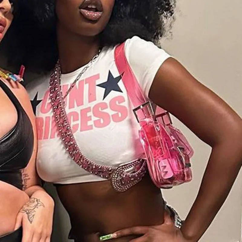 Y2K Letter Print Gothic Short Sleeve Crop Top