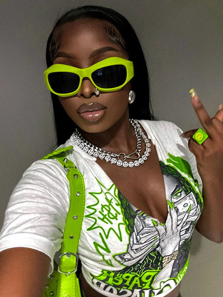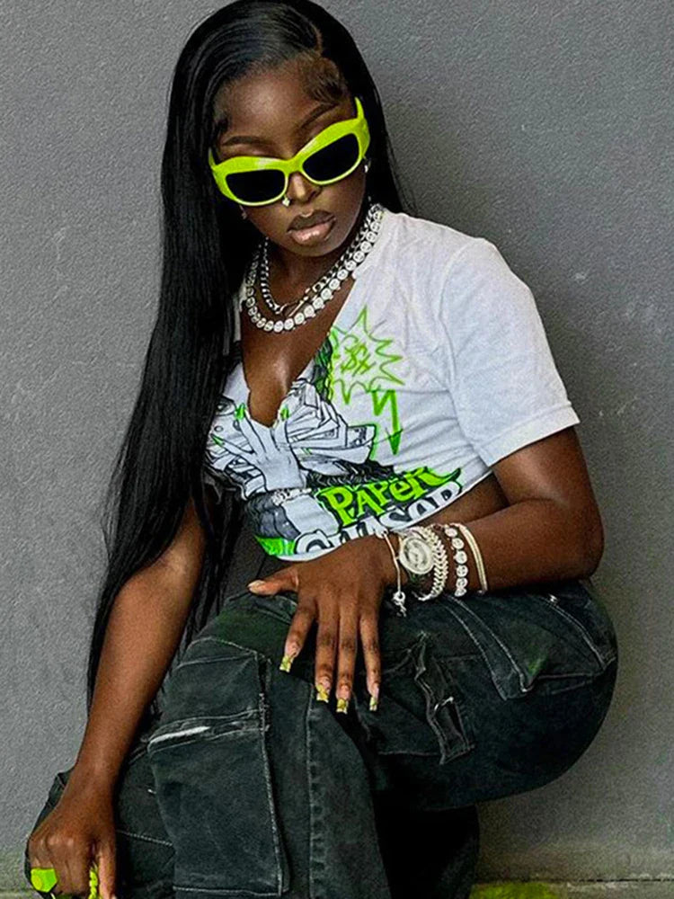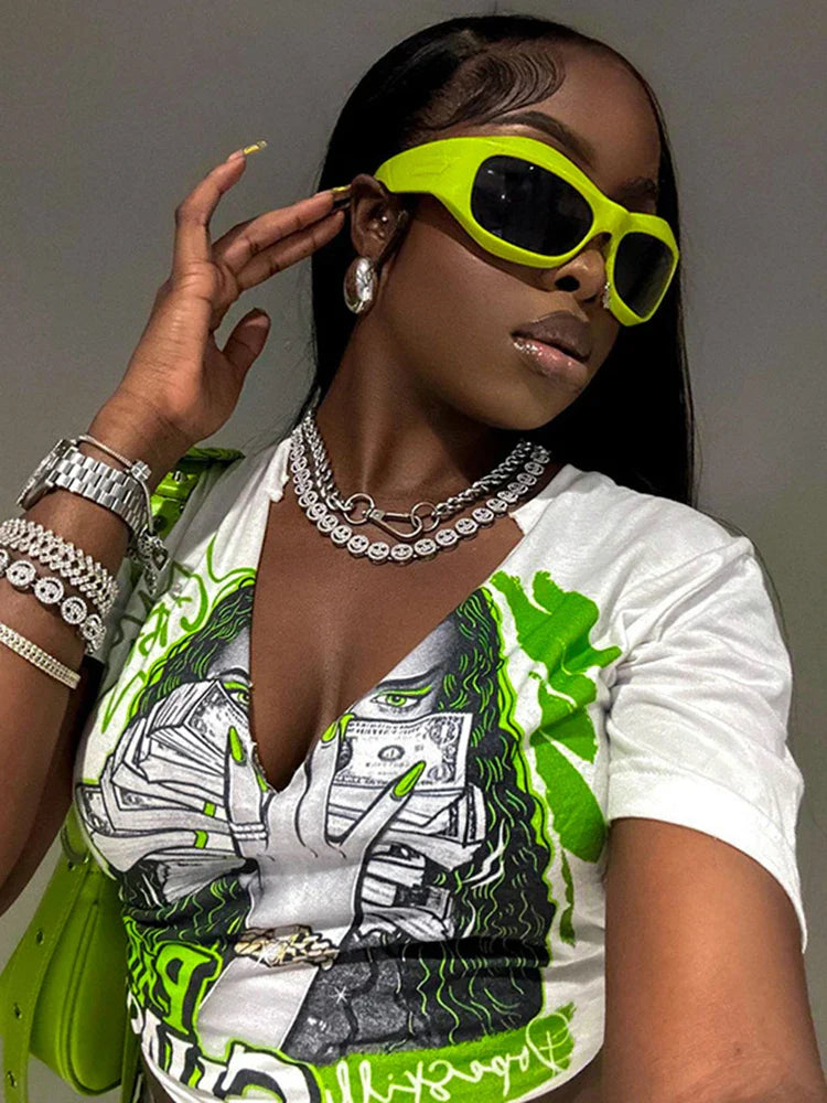 Graphic V Neck Midriff Crop Top