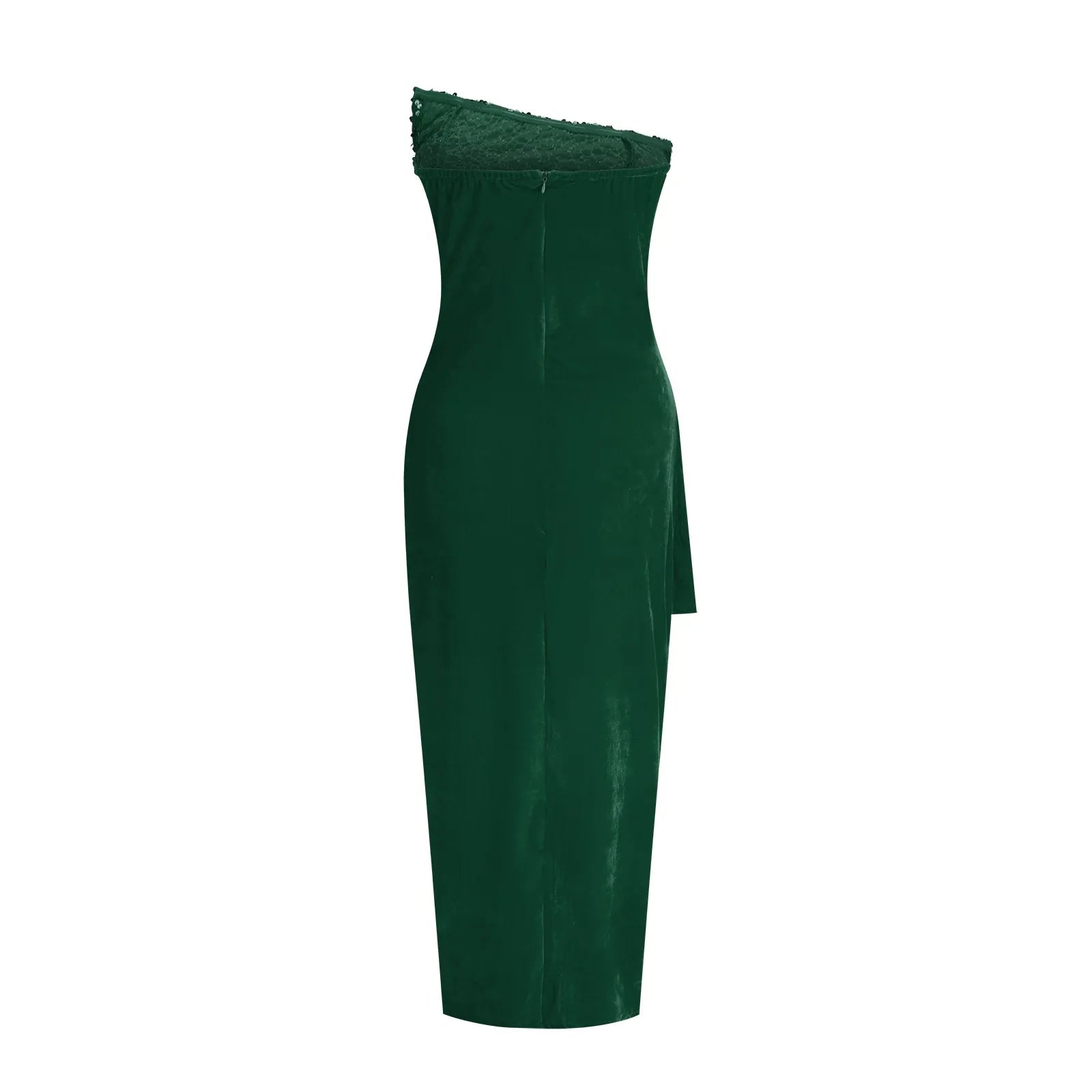 Green Mermaid Trumpet Satin Prom Evening Wedding Christmas Party Dress