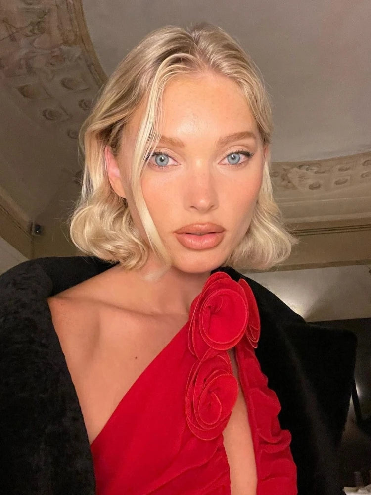 Deep V Neck 3D Flower Mini Strapless Backless Pleated Christmas Party Dress