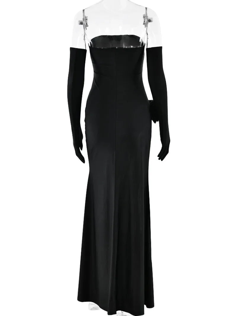 Red Christmas Party Dress - Strapless High Slit Maxi