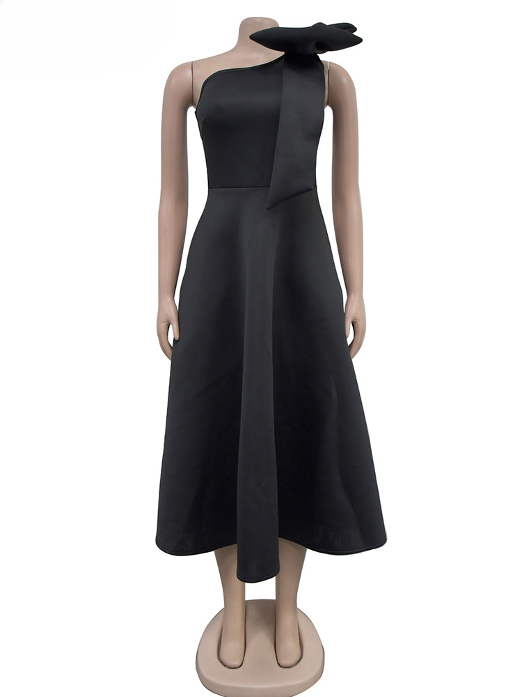 Red Christmas Party Dress with A Line Pleated One Shoulder Bow