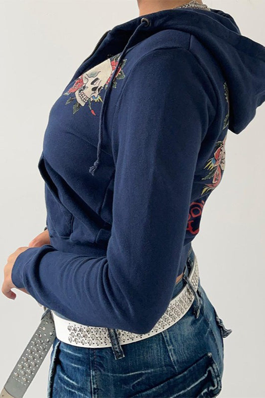Vintage Slim Fit Hooded Zip-Up Hoodie