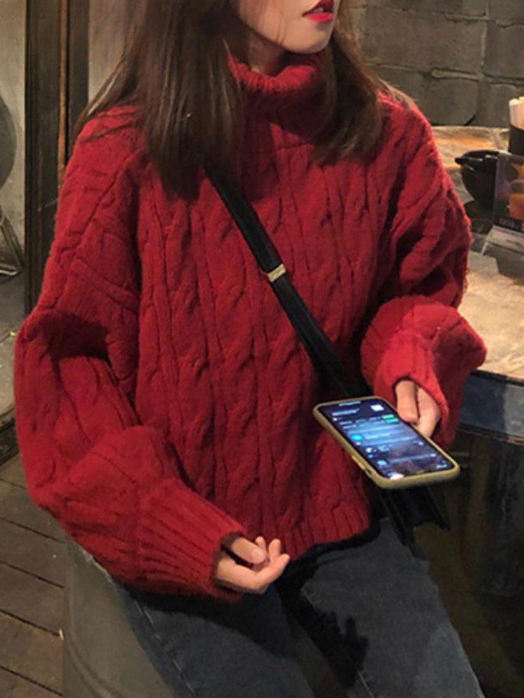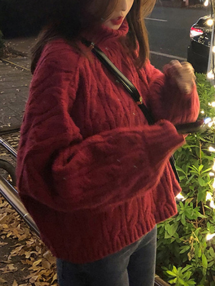 Casual Loose Vintage Solid Color Pullover Christmas Sweater