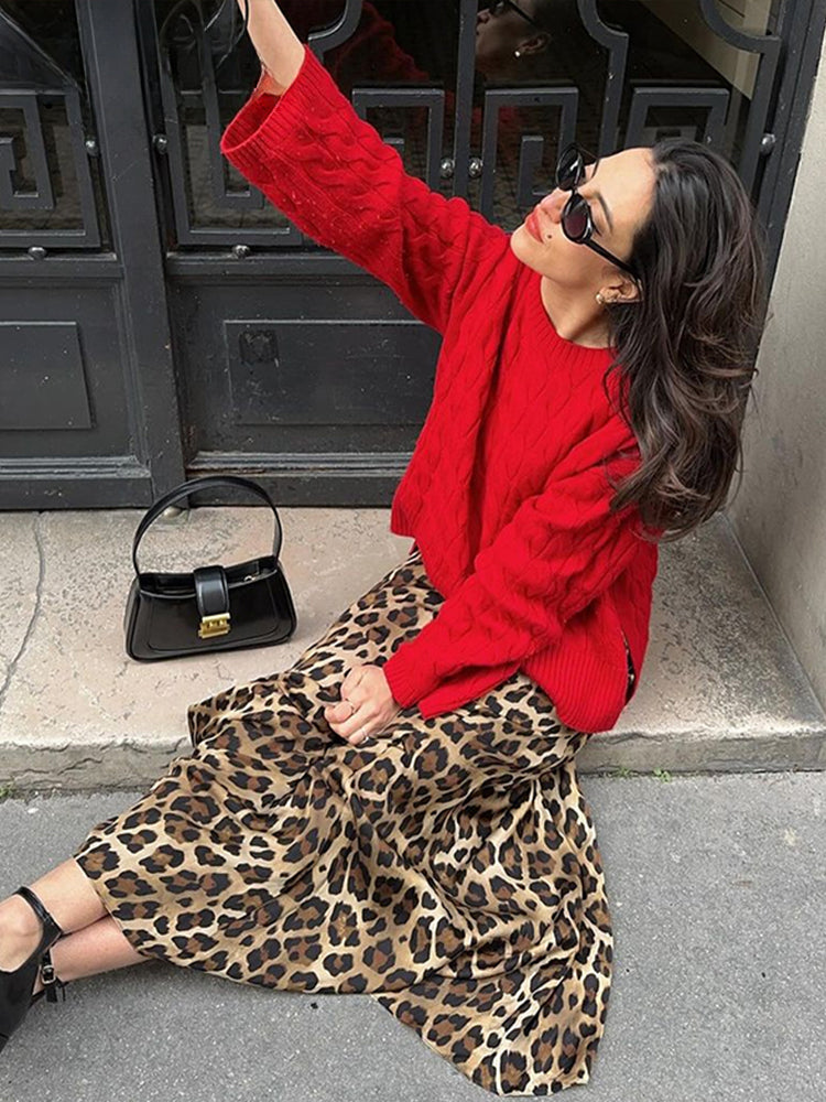 Christmas Sweater Lazy Twist O-Neck Long Sleeve Side Split Knitted