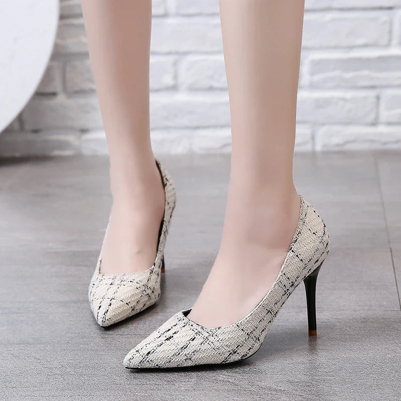 Simple Color Matching Plaid Design Shopping Walking New Style High Heel