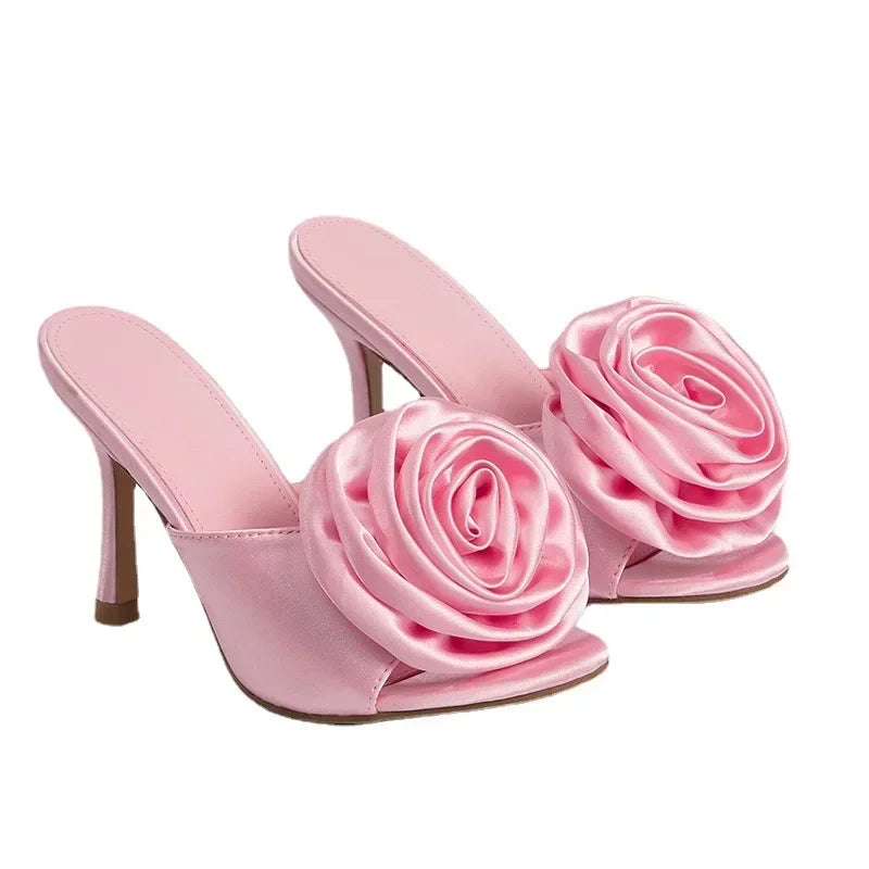 Sexy peep toe rose flower slip-on Thin high heel summer High Heel
