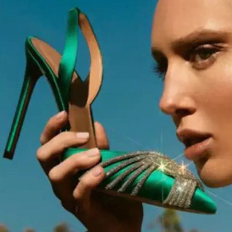 Luxury High Heel Pumps Pointed Rhinestone Back Strap High Heel High Heel