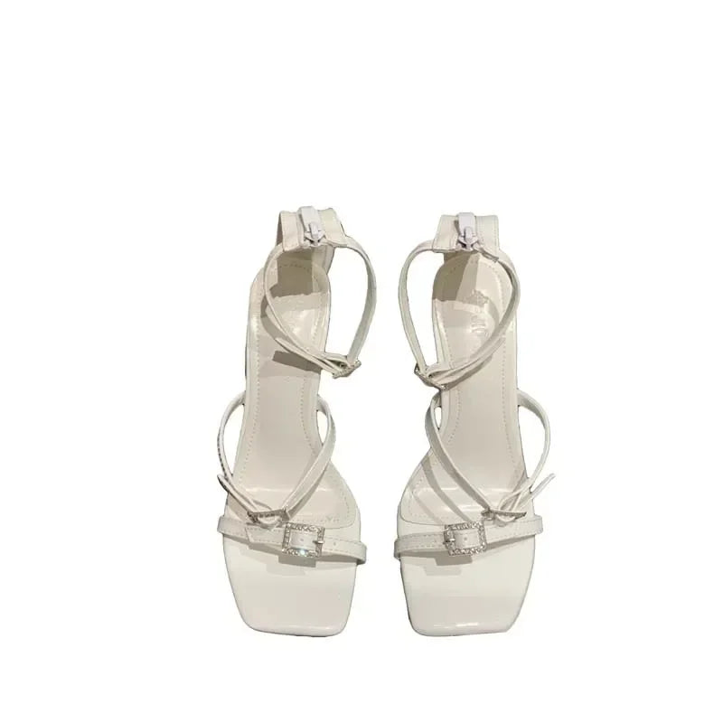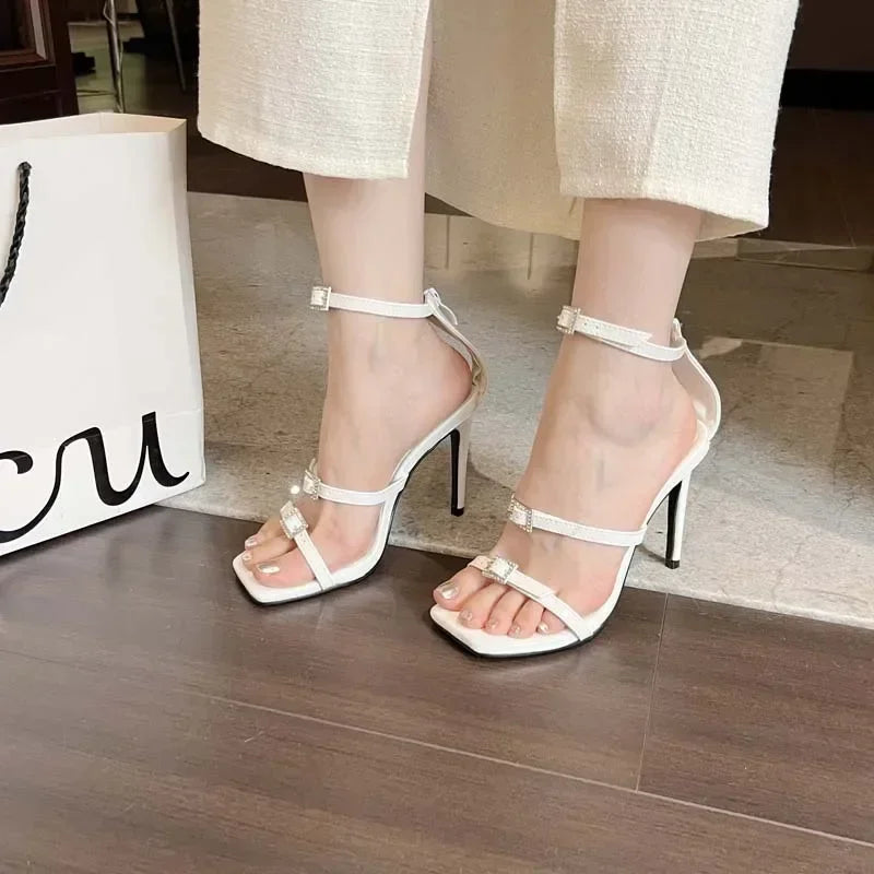 Sexy Peep Toe 12cm High Heel Pointed Black Rhinestone Serpentine Winding High Heel