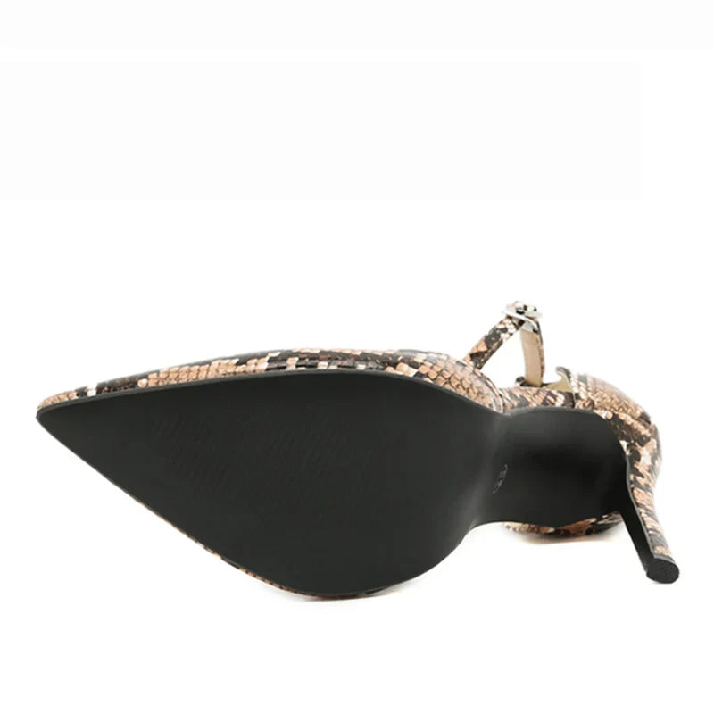 Sleek Sexy Snake Print Pointed Toe Stripper Heels High Heel