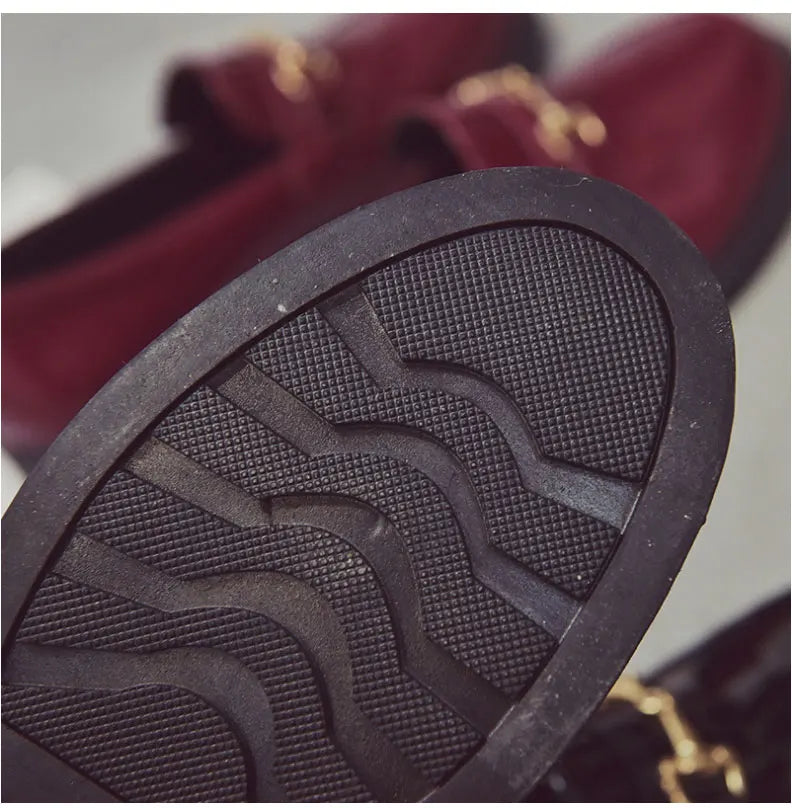 British Style Retro Patent Leather Buckle Fashion Solid Hedging Flats Loafers