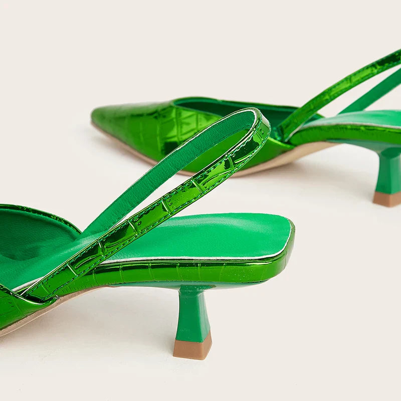 2024 Summer New Fashion Back Strap Stone Pattern Purple Pointed Toe Slingback Shoes Brand Wedding High Mules Low Heel Pumps