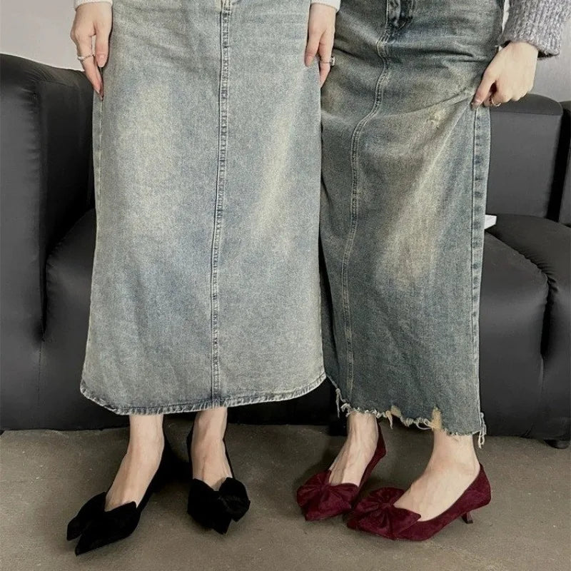 Autumn Elegant Butterfly Knot Stylish Pointed Toe Sexy Stiletto Low Heel Pumps