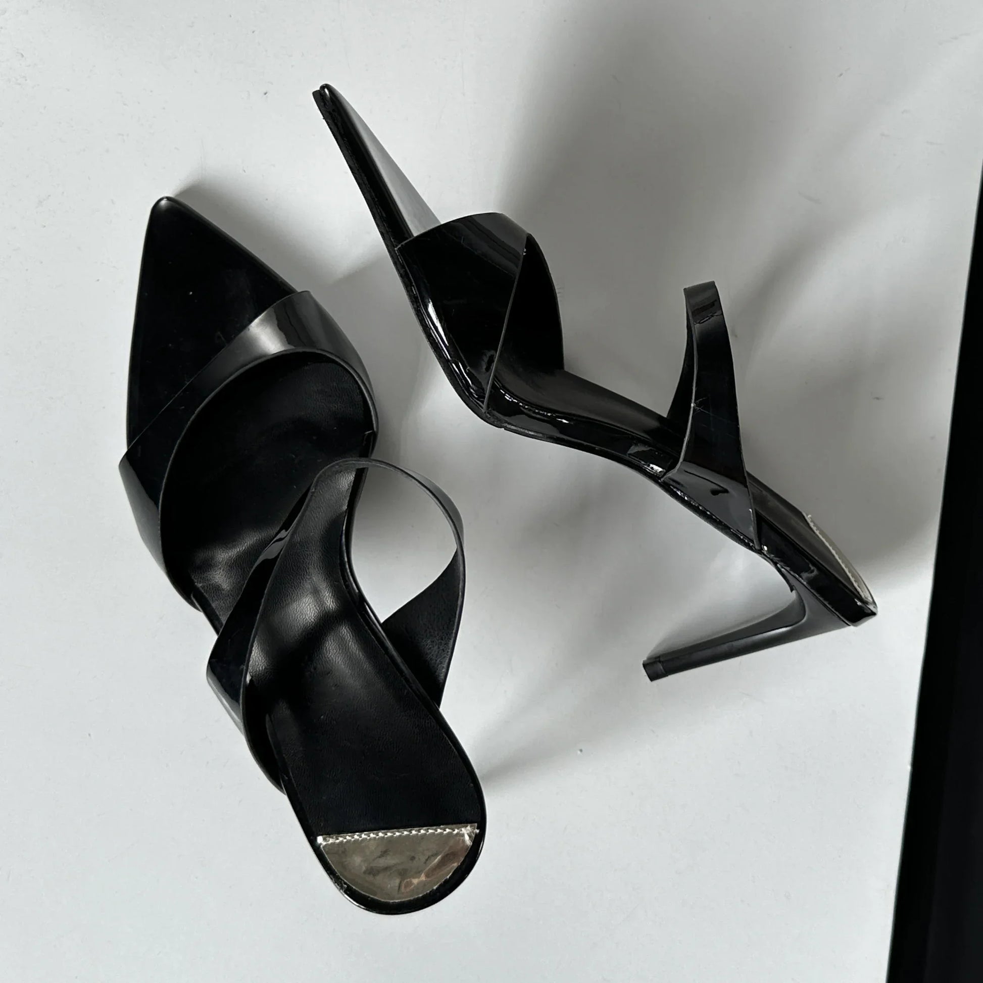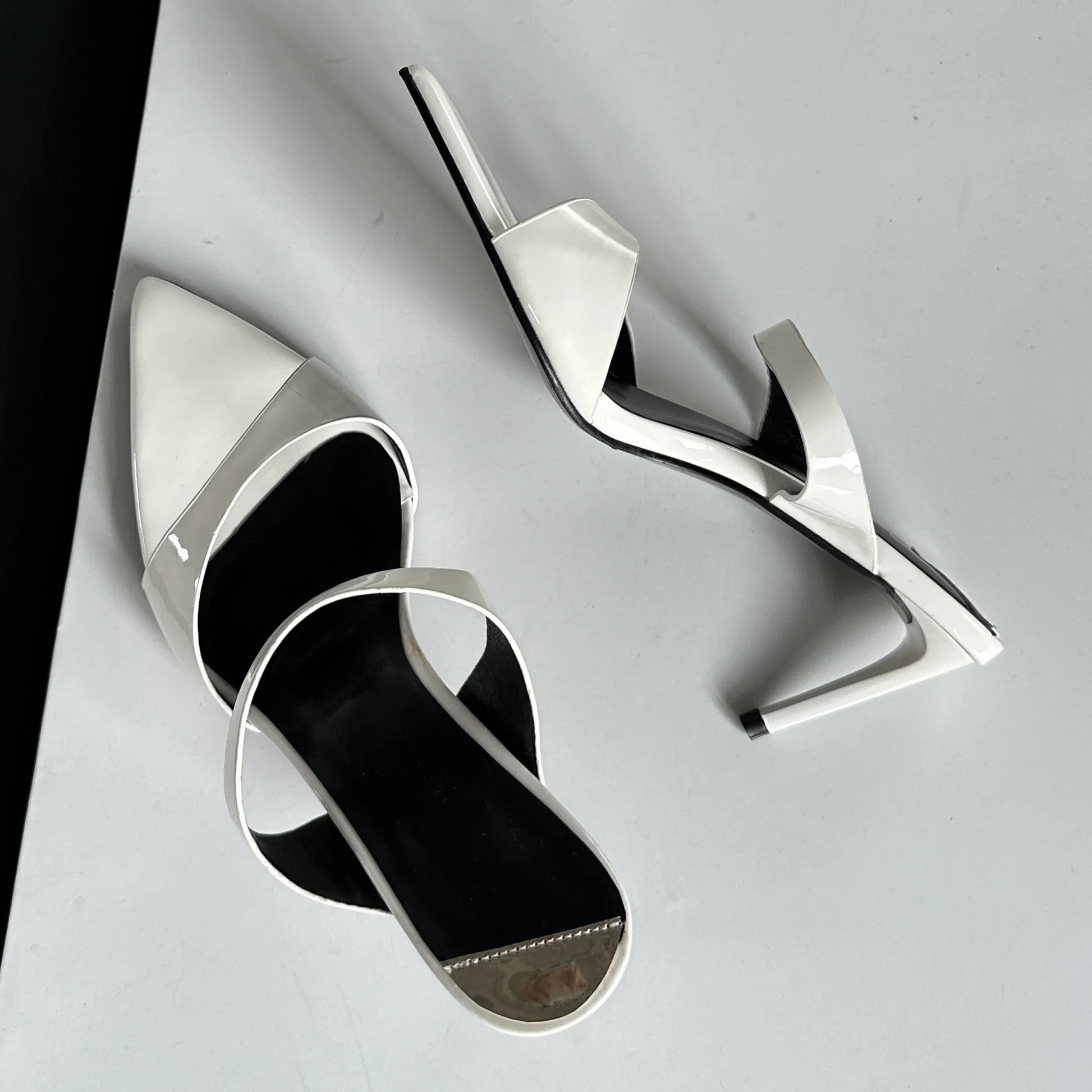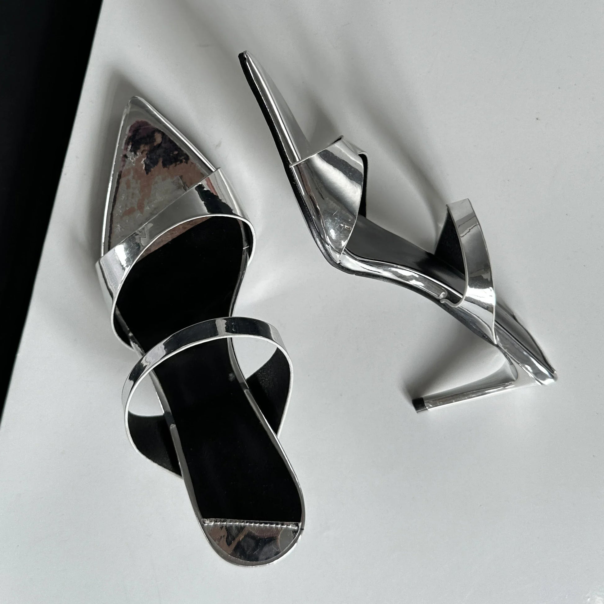 Summer Thin Highs Women Slippers Fashion Narrow Band Pointed Toe Slides Low Heel Pumps