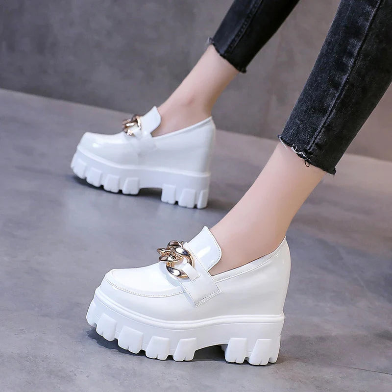 Patent Leather Breathable Chain Chunky High Heels Platform Sneakers Loafers