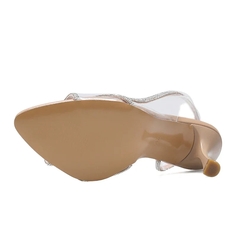Summer Sexy Slingback Highs Rhinestones Elegant Pointed Toe Transparent PVC Party Shoes Low Heel Pumps