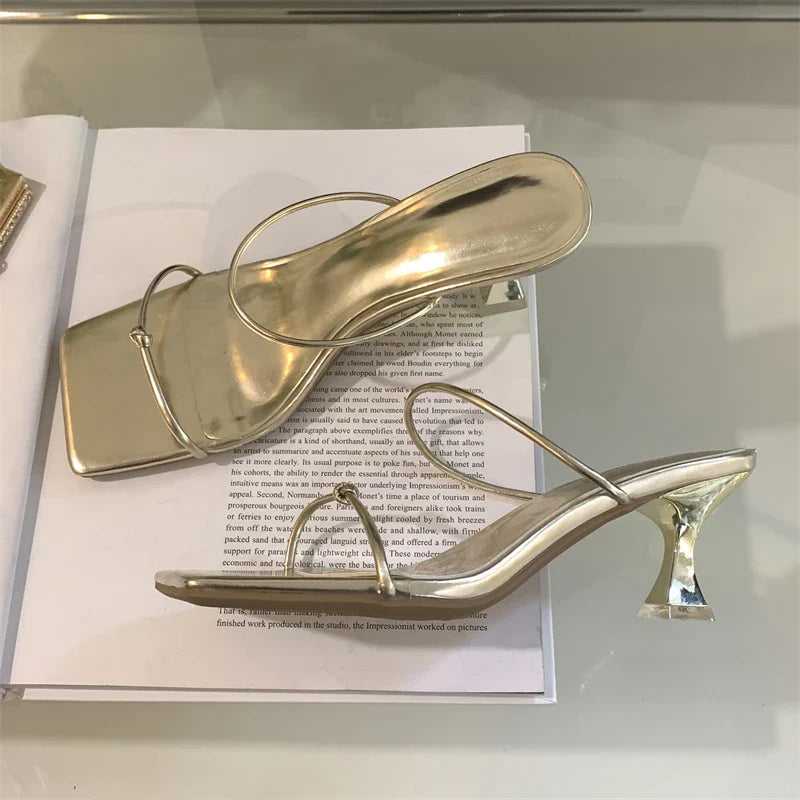 Summer Narrow Band Slipper Fashion Square Toe Slip On Elegant Gladiator Sandal Shoes Low Heel Pumps